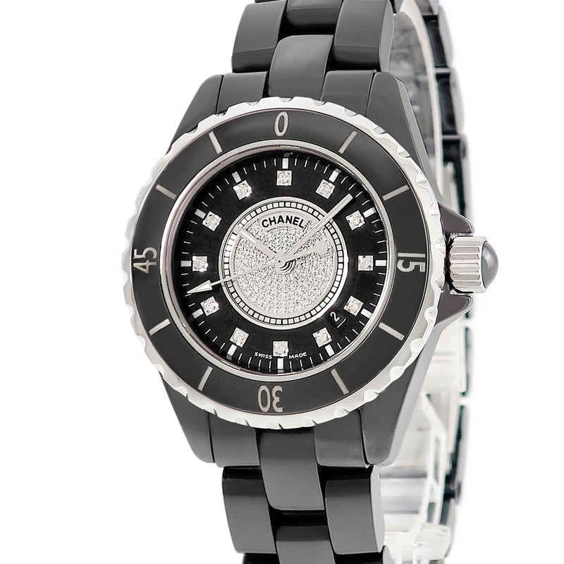 シャネル CHANEL J12 H2122 純正ダイヤ パヴェ 黒 ラウンド 回転ベゼル レディース 腕時計クオーツ ブラック 【中古】