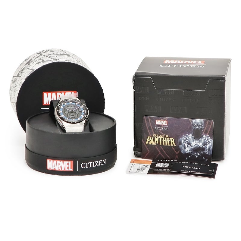 【SALE】 シチズン CITIZEN エコドライブ ブラックパンサー AW1668-50W 未使用 マーベル コラボ デイト チタニウム メンズ 腕時計クオーツ ブラック 【中古】