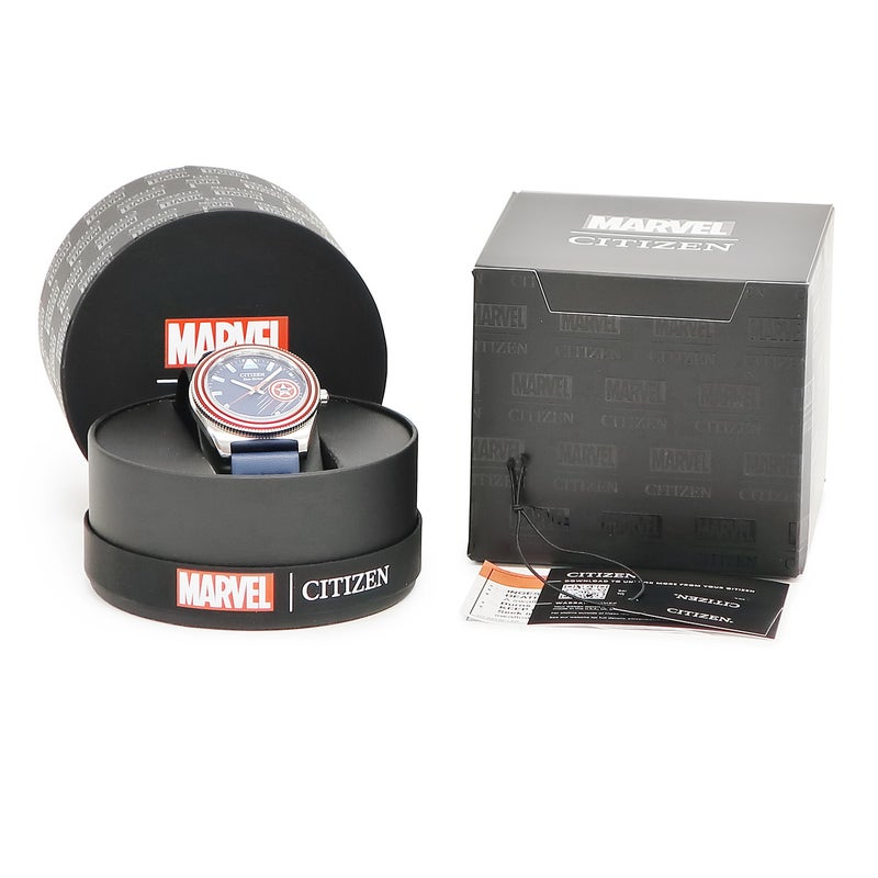 【SALE】 シチズン CITIZEN エコドライブ キャプテン アメリカ ソアーズ AW1796-09W 未使用 ブルー マーベル コラボ メンズ 腕時計クオーツ ブルー 【中古】