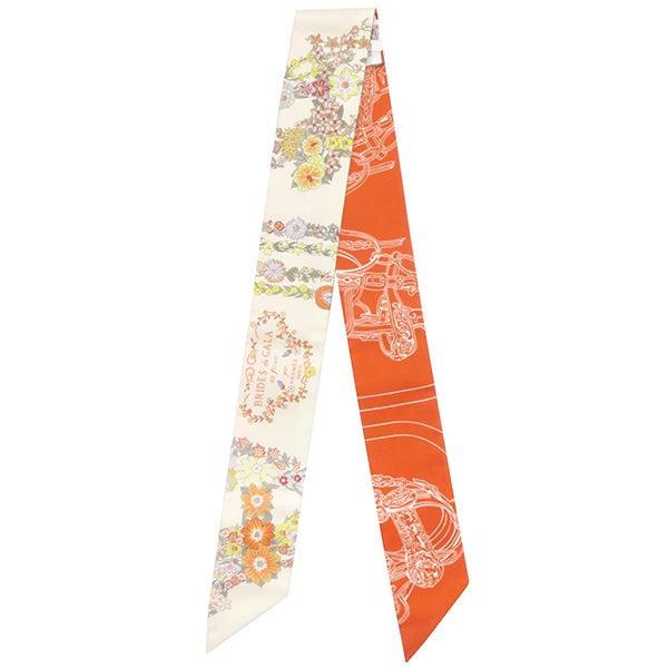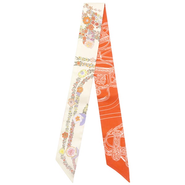 エルメス HERMES スカーフ ツイリー シルク ヴァニーユ×オレンジ×カーキ 未使用 【ブリッド ドゥ ガラ アン フルール&アイライナー】 H064220S 07 【箱】 【中古】