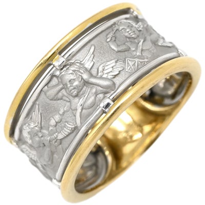 カレライカレラ Carrera y Carrera リング 指輪 ロンダ エンジェル ホワイトゴールド×イエローゴールド コンビ Au750 18K 天使モチーフ マットフィニッシュ 彫刻 19号 【中古】