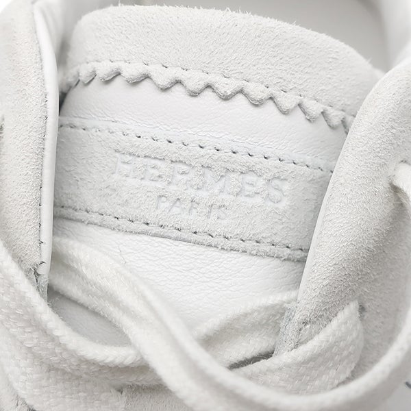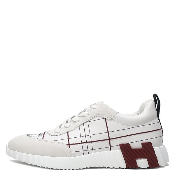 エルメス HERMES スニーカー バウンシング レザー ヴォーピケ シェーヴルヴェロア 白 #41 Hロゴ タータンモチーフ H252886ZH90405 【箱】 【中古】