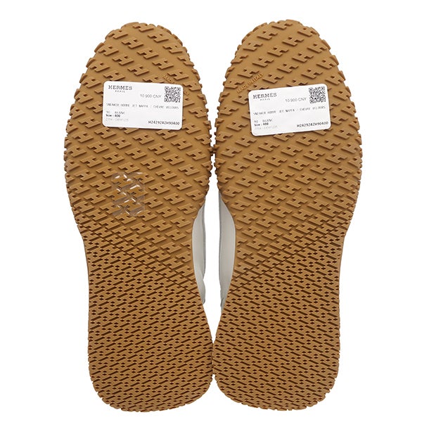 エルメス HERMES スニーカー ジェット ナッパ レザー トワルテクニック シェーヴルヴェロア 白 #40 新品 未使用 Hロゴ H242923ZH90400 【箱】 【中古】