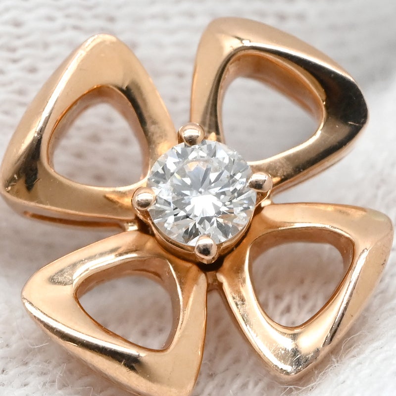 ブルガリ BVLGARI ピアス ダイヤモンドピアス ピンクゴールド Au750 PG K18RG オープンワーク クローバー 355327 【中古】