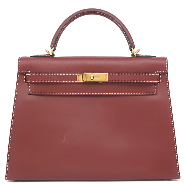 エルメス HERMES 2WAYバッグ ケリー32 外縫い ヴォーシャモニー ルージュアッシュ ゴールド金具 赤茶 □E 【保存袋】 【中古】