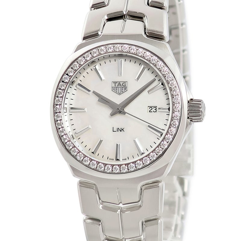タグホイヤー TAG Heuer リンク WBC1314.BA0600 純正ダイヤ ホワイト シェル 白 デイト レディース 腕時計クオーツ ホワイト 【中古】