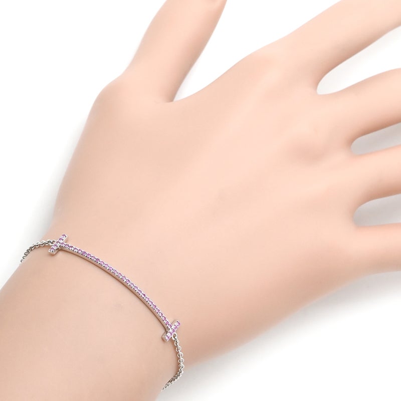 ティファニー Tiffany & Co ブレスレット Tスマイル ピンクサファイア ミディアム ホワイトゴールド 750 18K WG 【中古】