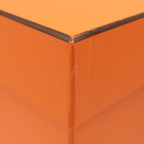 【外側】フチに微かな擦れ、ハンドルに微かな押し跡、金具に僅かな擦れ【内側】特になし【におい】僅かな素材特有のにおい【刻印の場所】内側右側面 ※箱に擦れがございます。