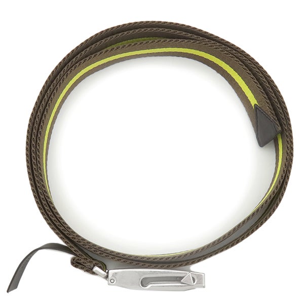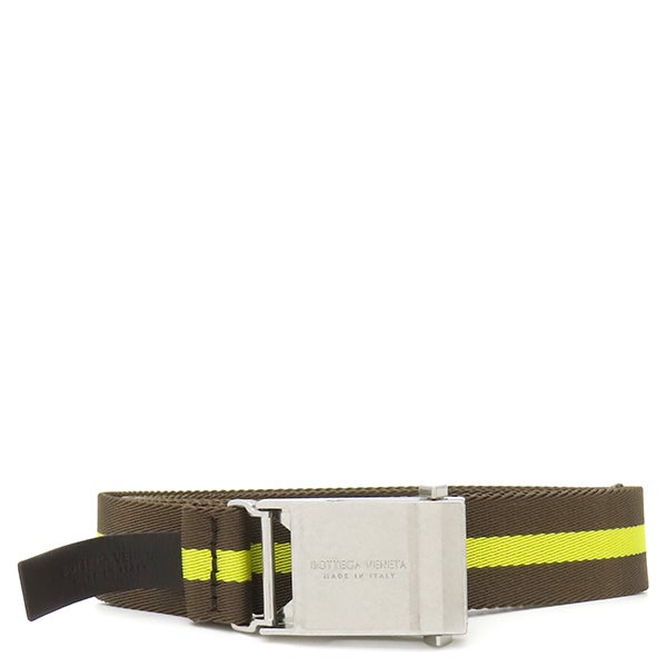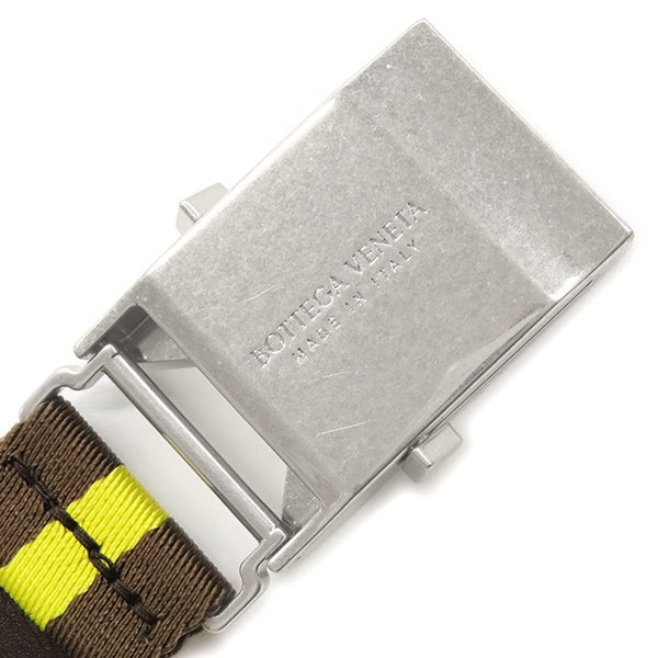 ボッテガヴェネタ BOTTEGA VENETA ベルト リボンストライプ ベルト キャンバス ブラウン×イエロー シルバー金具 茶 黄色 ガチャベルト GIベルト 629663VBWJ 【保存袋】 【中古】