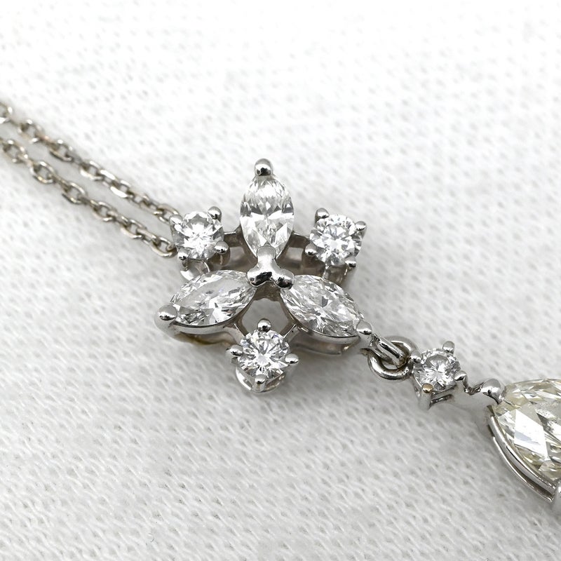 タサキ TASAKI ネックレス ダイヤ ペンダント ホワイトゴールド マーキスカット プラチナ ドロップ スイング 【中古】