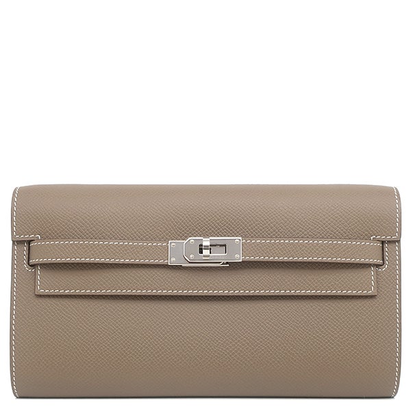 エルメス HERMES 長財布 ケリーウォレット ロング トゥーゴー ヴォーエプソン エトゥープ シルバー金具 茶 ショルダー 2025年製 K 【箱】 【中古】