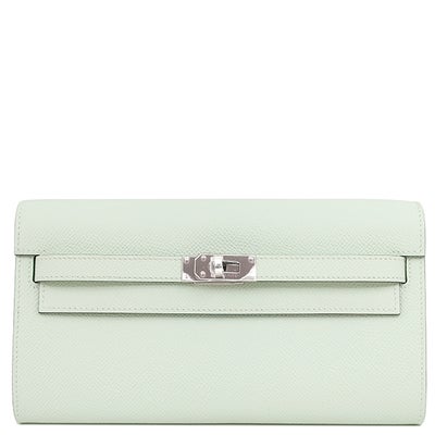 エルメス HERMES 長財布 ケリーウォレット ロング トゥーゴー ヴォーエプソン ヴェールペパーミント シルバー金具 薄緑 2025年製 K 【箱】 【中古】