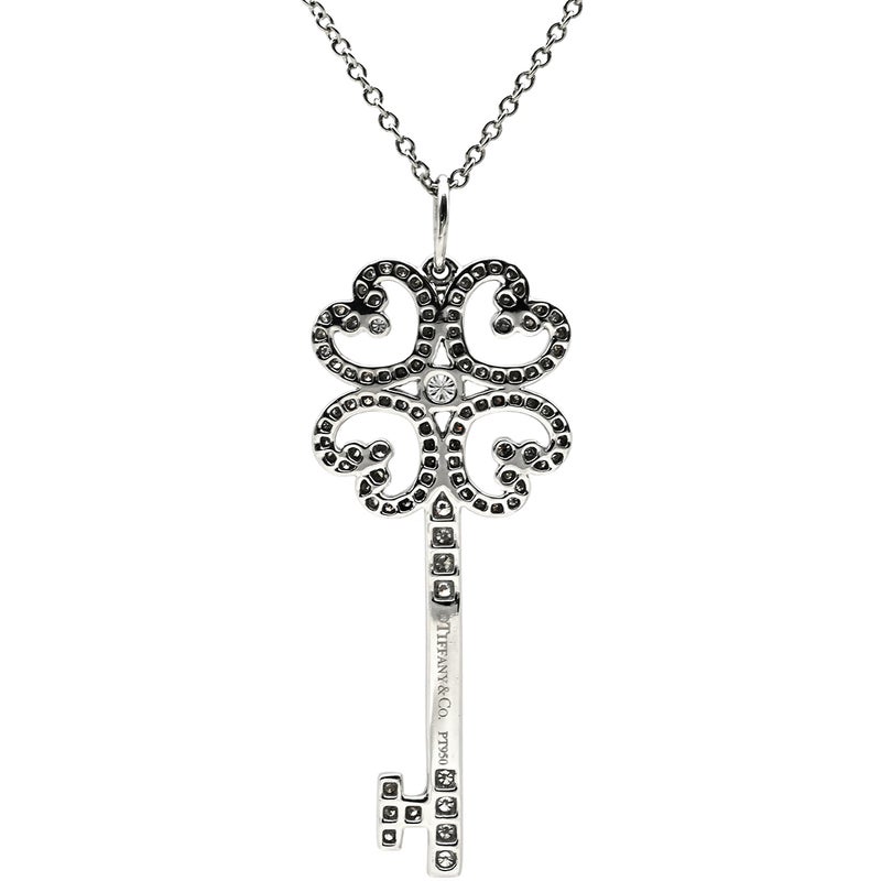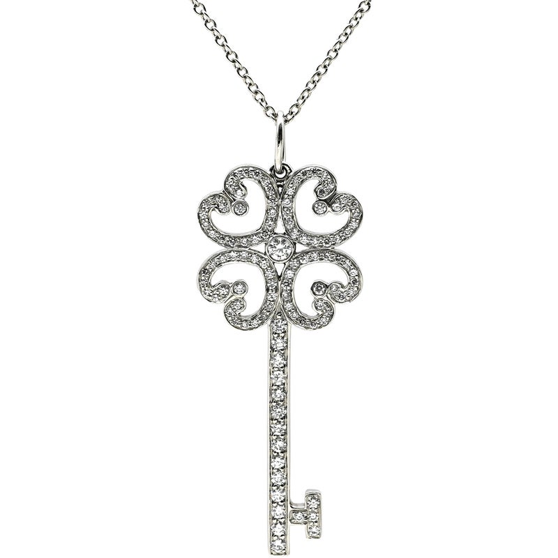 ティファニー Tiffany & Co ネックレス クアトラ ハートキー ペンダント プラチナシルバー ダイヤモンド プラチナ 鍵モチーフ 【箱】 【中古】