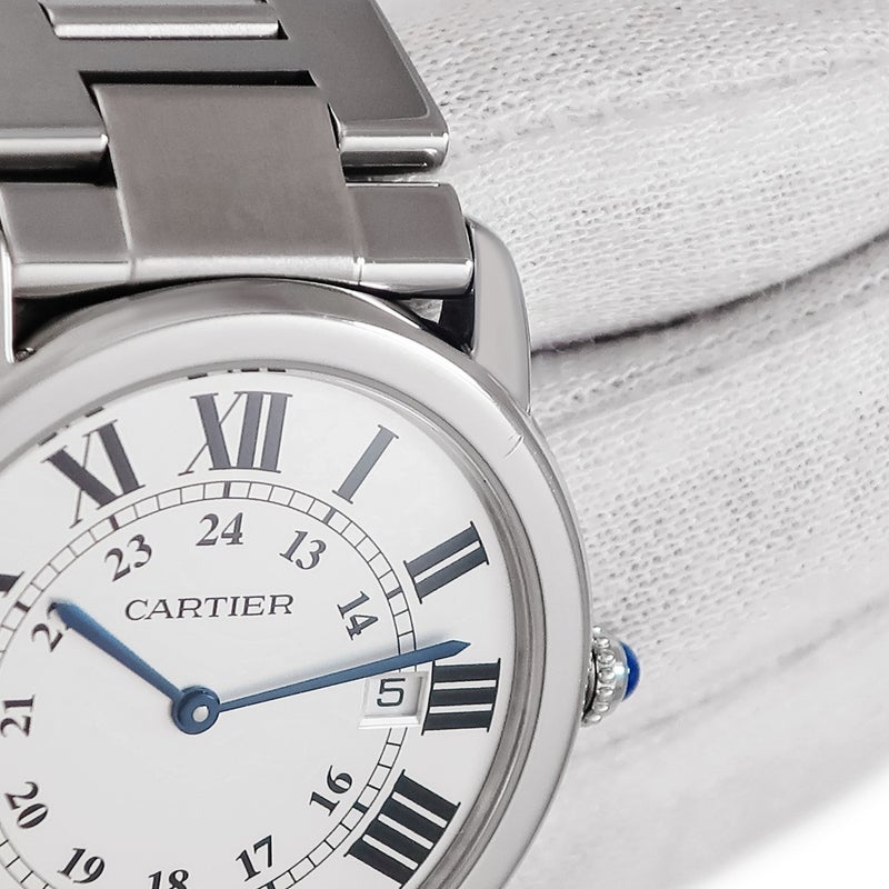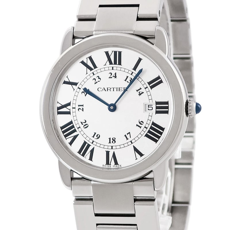 カルティエ Cartier ロンドソロ ドゥ カルティエ LM W6701005 シルバー ローマン 青針 デイト メンズ 腕時計クオーツ シルバー 【中古】