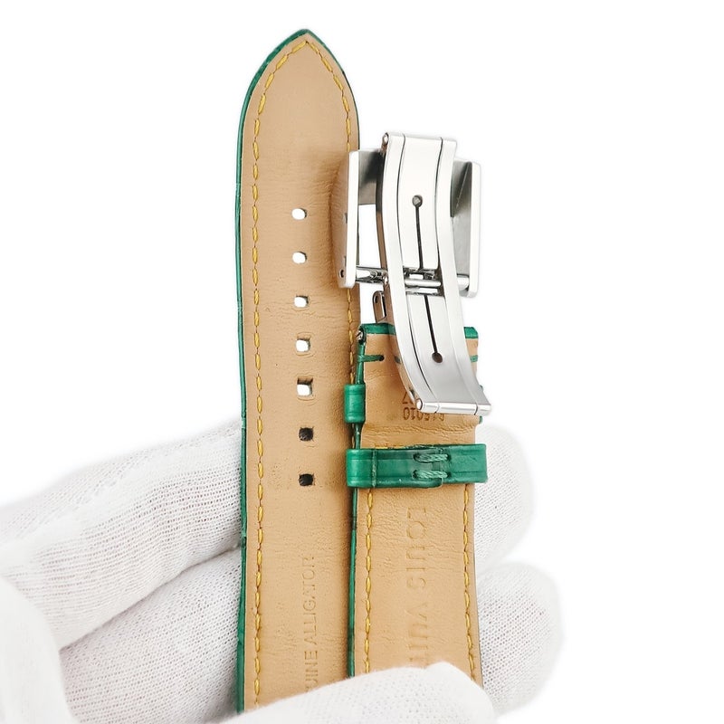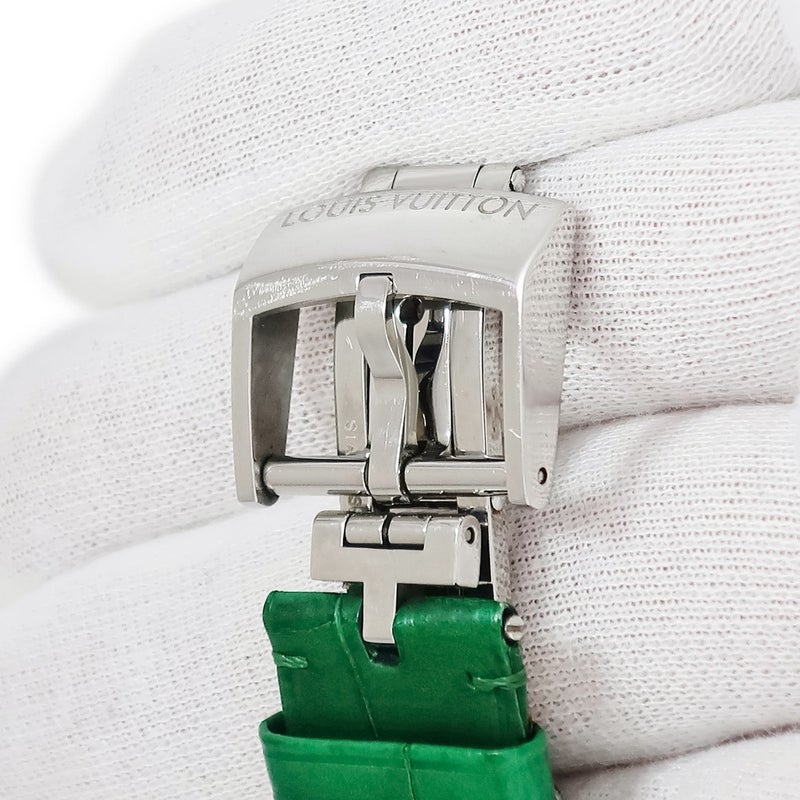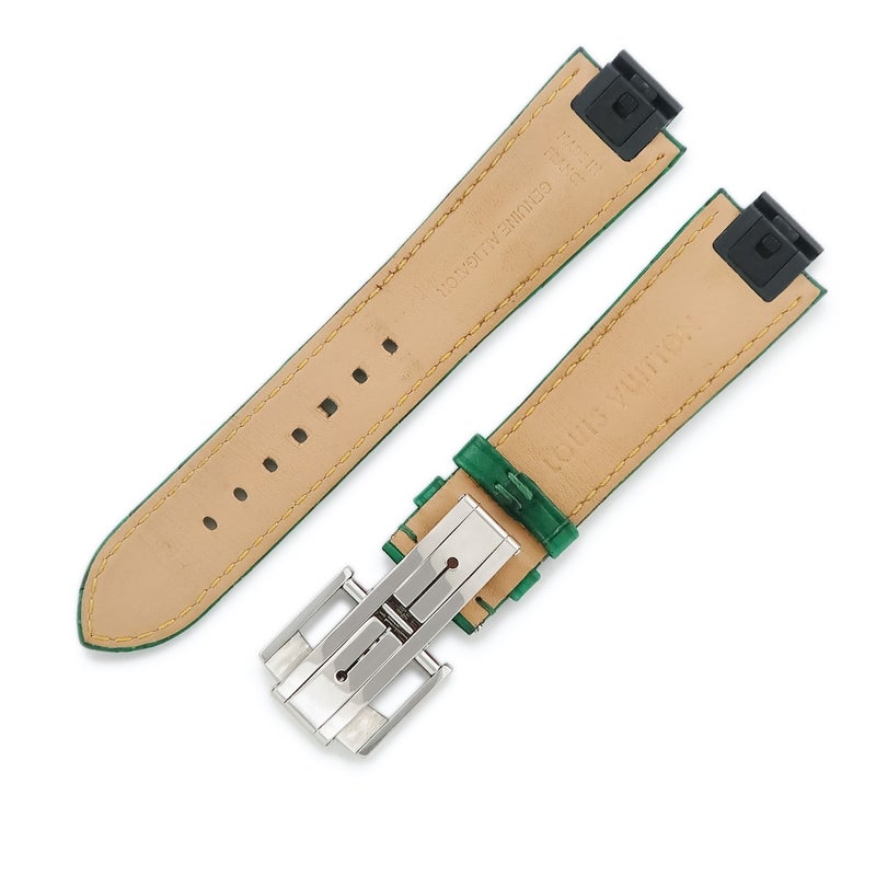 ルイヴィトン LOUIS VUITTON 腕時計パーツ 純正 タンブール用 クロコバンド クロコダイル ステンレススチール グリーン 替え ベルト 純正SS製尾錠付き 21mm グリーン 緑 R15010 【中古】