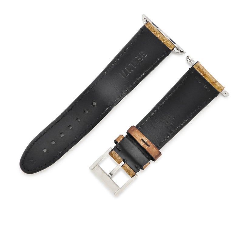 ベルルッティ BERLUTI 腕時計パーツ 純正 アップルウォッチ 44 45 46 49 mm用 レザー ステンレススチール ブラウン カリグラフィ レザーベルト 35mm 尾錠付き 【中古】