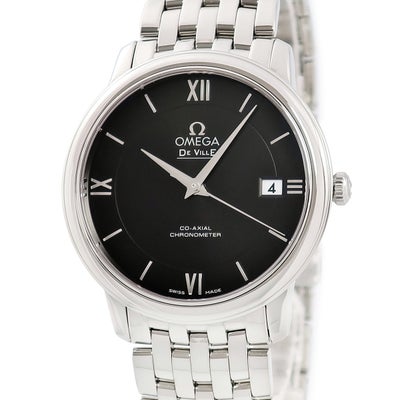 オメガ OMEGA デ ヴィル プレステージ コーアクシャル 424.10.37.20.01.001 OH済 デイト 黒 ローマン バー メンズ 腕時計自動巻き ブラック 【中古】