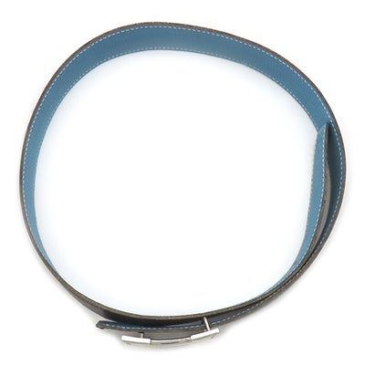 エルメス HERMES ベルト コンスタンスH ボックスカーフ トゴ ブラック×ブルージーン #75 シルバー金具 Hバックル リバーシブル □H 【中古】