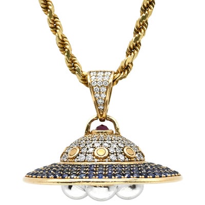 AVALANCHE アヴァランチ ネックレス UFOモチーフ ペンダント イエローゴールド 青 赤 10金 10 YG サファイア ルビー ダイヤ オーダーメイド品 【中古】