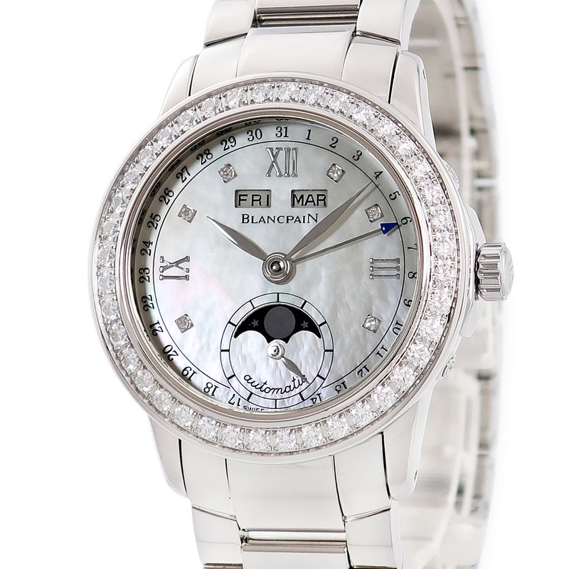 ブランパン BLANCPAIN レマン ムーンフェイズ 2360-4691A-71 OH済 純正ダイヤ 白 ホワイト シェル レディース 腕時計自動巻き ホワイト 【中古】