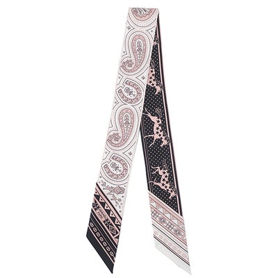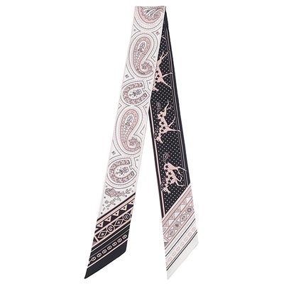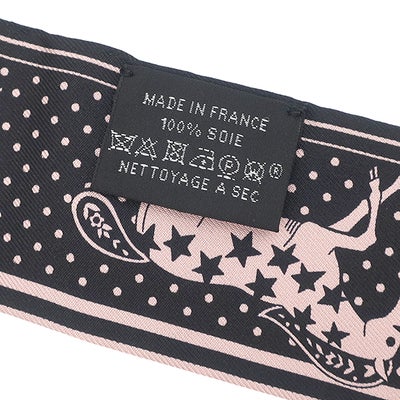 エルメス HERMES スカーフ ツイリー シルク ブラック×ホワイト×ヴューローズ 新品 未使用 【シュヴァル ドゥ クール バンダナ】 【箱】 【中古】