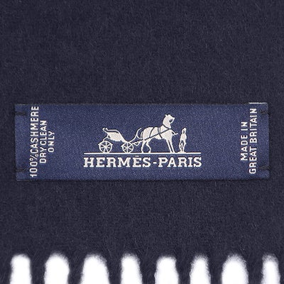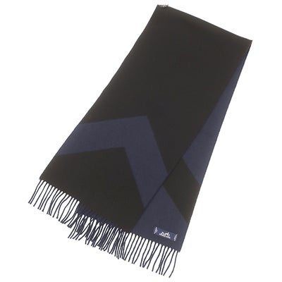 エルメス HERMES マフラー カザック シェブロン カシミヤ ネイビー×ブラック 黒 紺 バイカラー 【箱】 【中古】
