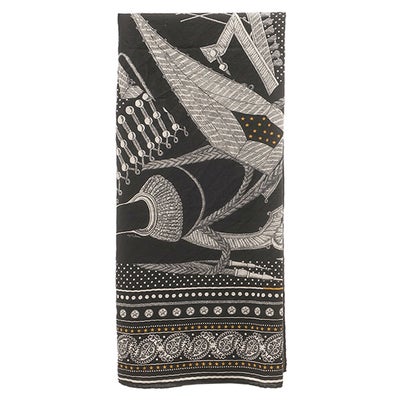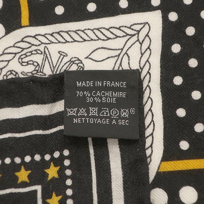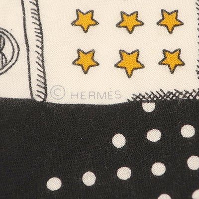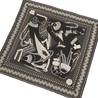 エルメス HERMES ストール カレ140 カレジェアン カシミヤ シルク ブラック×ホワイト×ゴールド 【ZOUAVES ET DRAGONS/ズアヴとドラゴン】 【箱】 【中古】