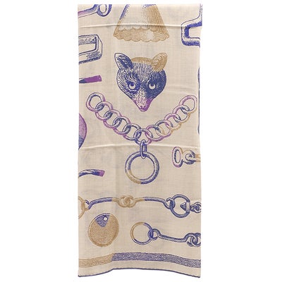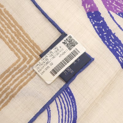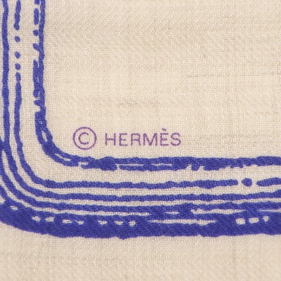 エルメス HERMES ストール カレ140 カレジェアン カシミヤ シルク ナチュラル×インディゴ×バイオレット 新品 未使用 【鞍職人の詩的な目録】 【箱】 【中古】