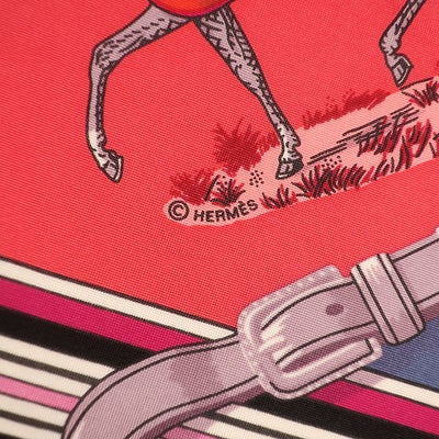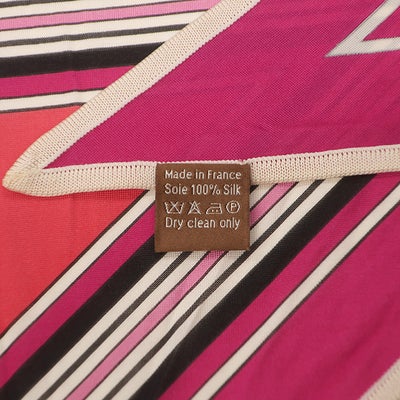 エルメス HERMES ストール カレ90 トライアングル ジェアン シルク ピンク×マルチカラー 【COUVERTURES ET TENUES/馬着】 【箱】 【中古】