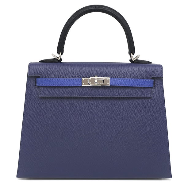 エルメス HERMES 2WAYバッグ ケリー25 外縫い トリコロール ヴォーエプソン ブルーサフィール×ブルーフランス×ブラック シルバー金具 紺 青 黒 U 【箱】 【中古】
