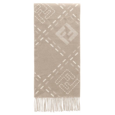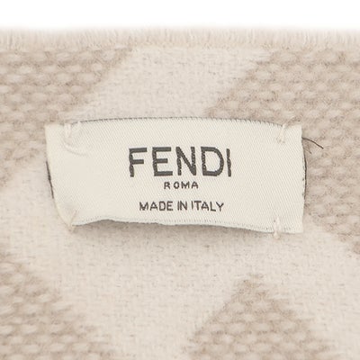 フェンディ FENDI マフラー FFロゴ ウール グレージュ 白 FF柄 ズッカ柄 フリンジ FXT462 AYKU 【中古】