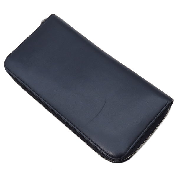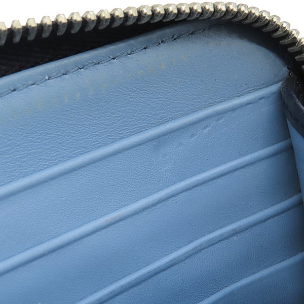 プラダ PRADA 長財布 ロゴ ラウンドファスナー レザー ネイビー シルバー金具 紺 水色 バイカラー 【中古】