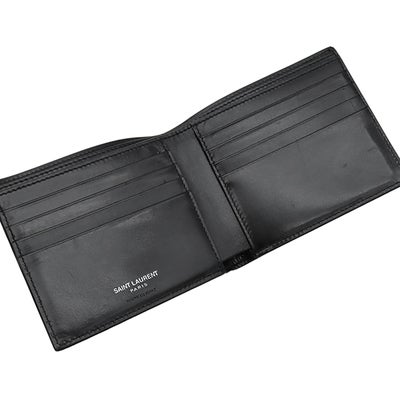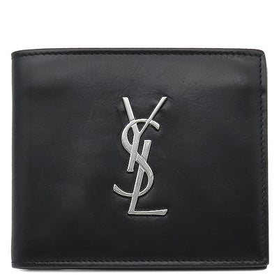 サンローラン SAINT LAURENT 二つ折り財布 カサンドラ モノグラム ウォレット レザー ブラック シルバー金具 黒 札入れ 453276 【中古】