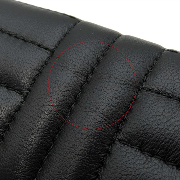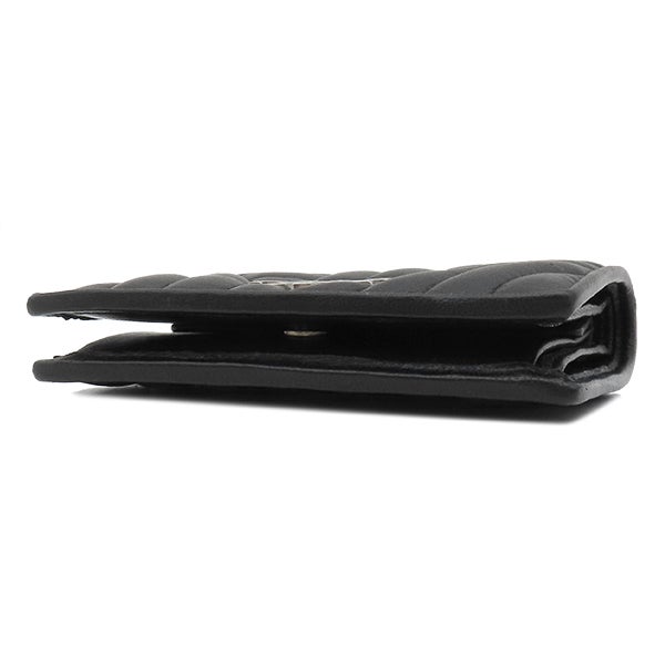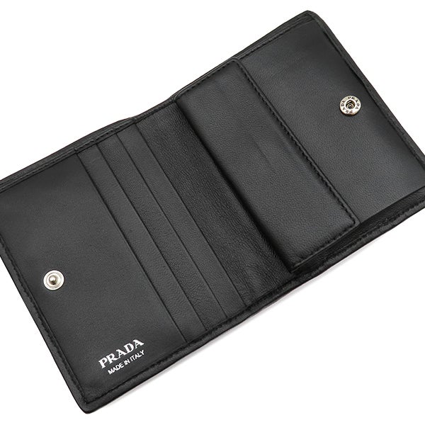 プラダ PRADA 二つ折り財布 メタルロゴ コンパクトウォレット レザー ブラック マットシルバー金具 ソフトカーフ キルティング 1MV204 【中古】