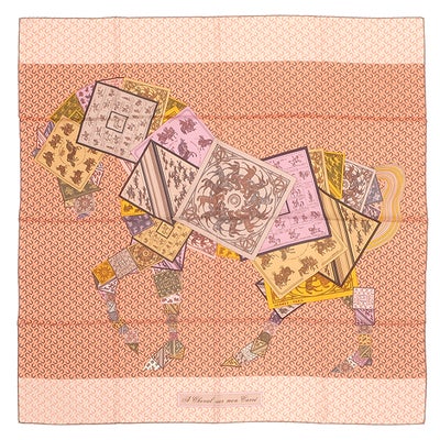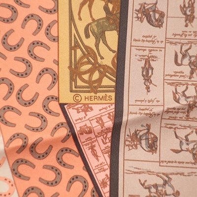 エルメス HERMES スカーフ カレ90 CARRE シルク ピンク×マルチカラー 【A CHEVAL SUR MON CARRE/カレの馬に乗って】 【箱】 【中古】