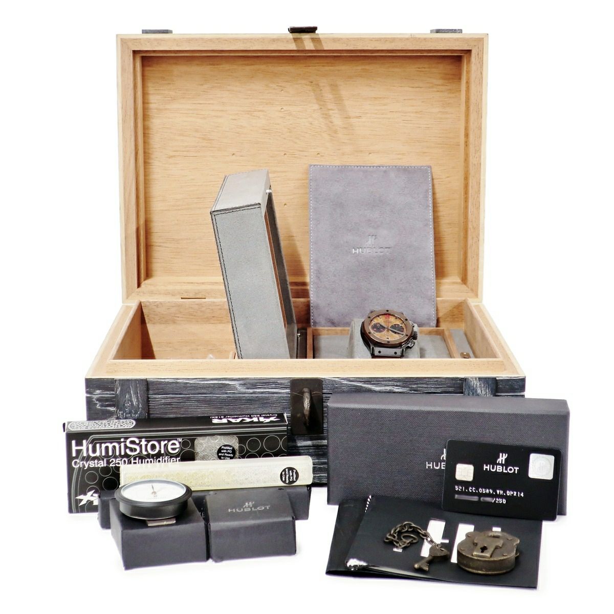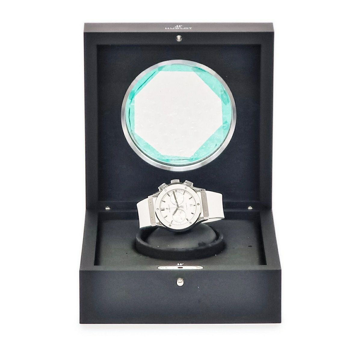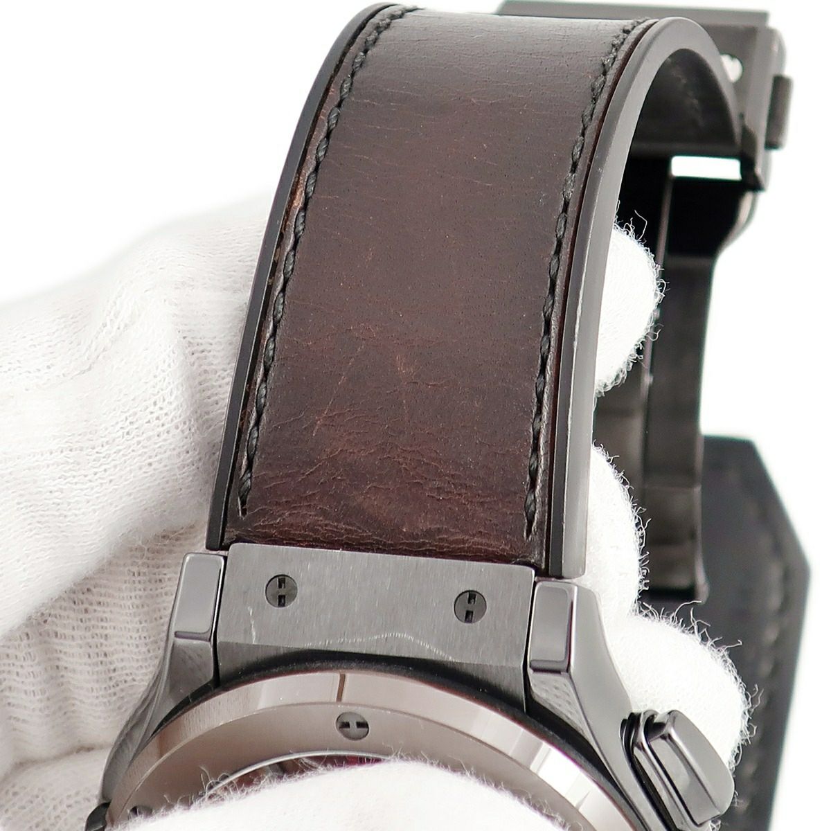 クラシックなデザインとハイテク素材を融合させたモダンな薄型時計。シンプルで洗練されたデザインは幅広い装いにマッチしてウブロ初心者にも最適。