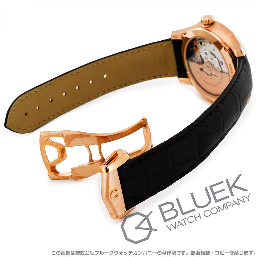 艶なし(一部艶あり)の18Kセドナゴールドケース・艶ありの18Kセドナゴールドベゼル・シルバー文字盤・18Kを施したセドナゴールドの指針・ローマンインデックス・パワーリザーブ60時間・レザー(アリゲーター)ブラウンの革ベルト・Dバックル・腕周り調整は約8mm幅の間隔で7段階可能・バックスケルトン・ラグにシリアルナンバー