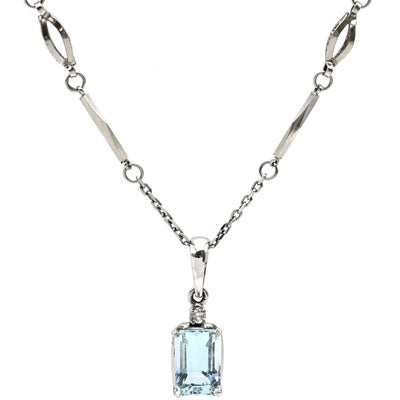 ネックレス ライトブルー×プラチナシルバー 水色 アクアマリン スクエア バケットカット ダイヤ プラチナ 【中古】のレビューを書く