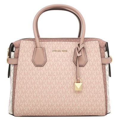 マイケルコース Michael Kors 2WAYバッグ Mercer ミディアム カラーブロック ロゴ ベルト付きサッチェル PVC レザー ピンク×ホワイト ゴールド金具 30S0GM9S2V 【保存袋】 【中古】のレビューを書く