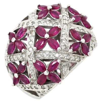 リング 指輪 ラティス ダイヤリング ホワイトゴールド WG 14K ダイヤモンド ルビー フラワークラスター 16号 【中古】のレビューを書く
