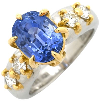 リング 指輪 サファイア ダイヤ リング イエローゴールド×プラチナシルバー Au750 18K Pt900 ブルー コンビ 4.32ct 12号 【中古】のレビューを書く