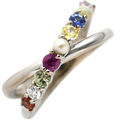 リング 指輪 ホワイトゴールド×マルチカラー ダイヤ ルビー ピンクスピネル サファイア ガーネット パール クリソベリルキャッツアイ 14号 【中古】のレビューを書く