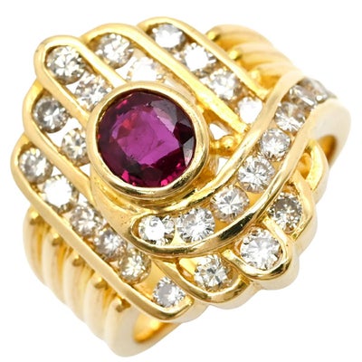リング 指輪 ルビー ダイヤ レッド×イエローゴールド 0.84ct イエローゴールド Au750 18K 18金 赤 オーバル 12号 【中古】のレビューを書く