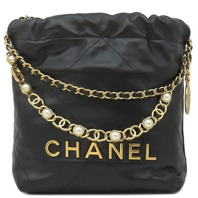 シャネル CHANEL ショルダーバッグ シャネル22 ミニ レザー チェーンショルダー レザー ブラック ゴールド金具 黒 パールロゴチェーン ランダム番 【箱】 【中古】のレビューを書く