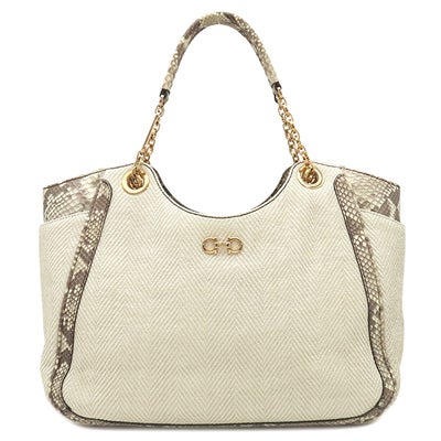 サルヴァトーレ・フェラガモ Salvatore Ferragamo トートバッグ パイソン チェーンショルダー ファブリック パイソン ベージュ ゴールド金具 肩掛け 【中古】のレビューを書く
