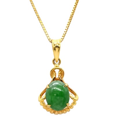 ネックレス ヒスイ ペンダント グリーンXイエローゴールド 緑 グリーン 翡翠 ひすい ジェダイト オーバルカボションカット ベネチアンチェーン 【中古】のレビューを書く