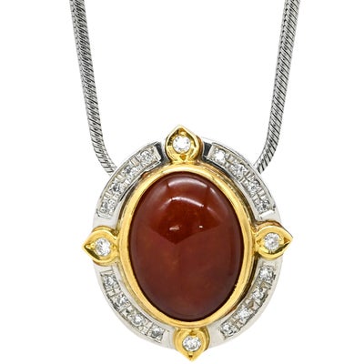 ネックレス ジェダイト 翡翠 ヒスイ ダイヤモンド 赤×イエローゴールド×プラチナシルバー K18YG×Pt850 オーバルペンダント スネークチェーン 【中古】のレビューを書く