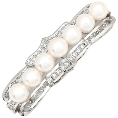 アクセサリー 7Pパール 0.34ctダイヤ 帯どめ パールホワイト×プラチナシルバー Pt900 帯留め 7粒 7連 真珠 あこや アコヤ 珠 【中古】のレビューを書く