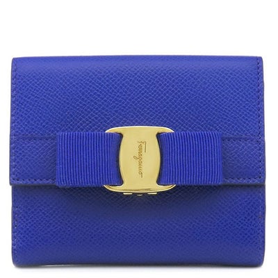 サルヴァトーレ・フェラガモ Salvatore Ferragamo 二つ折り財布 ヴァラ リボン レザー ブルー ゴールド金具 青 コンパクトウォレット 22A926 【中古】のレビューを書く