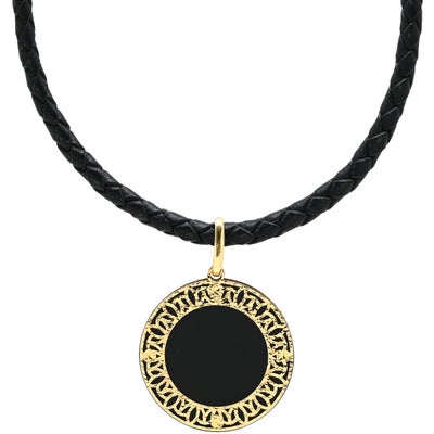 ネックレス サークル型ペンダント イエローゴールド×ブラック Au750 18K ラウンド 透かし模様 革紐 【中古】のレビューを書く